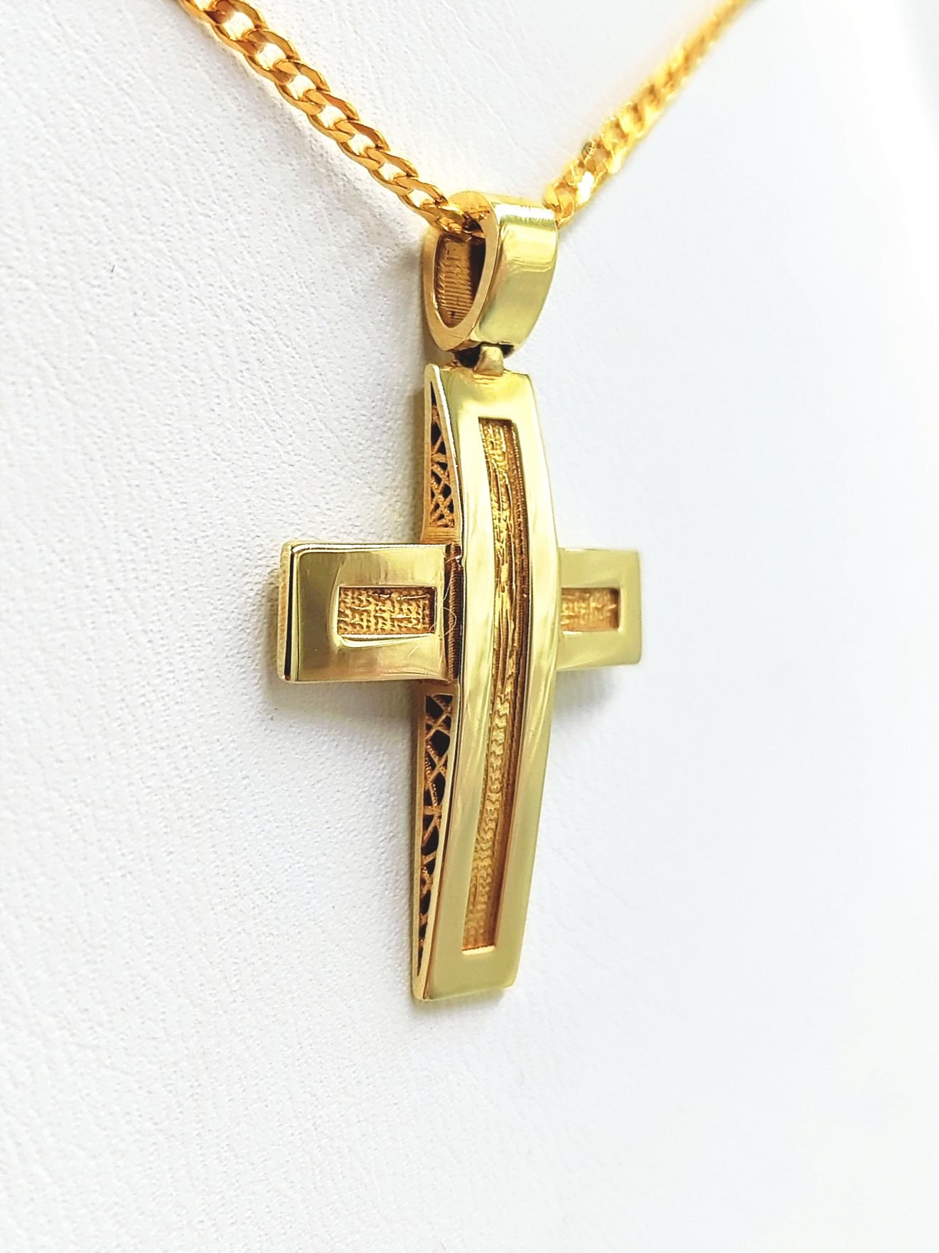 Χρυσός σταυρός Κ14 διπλής όψης, δεν περιλαμβάνει αλυσίδα