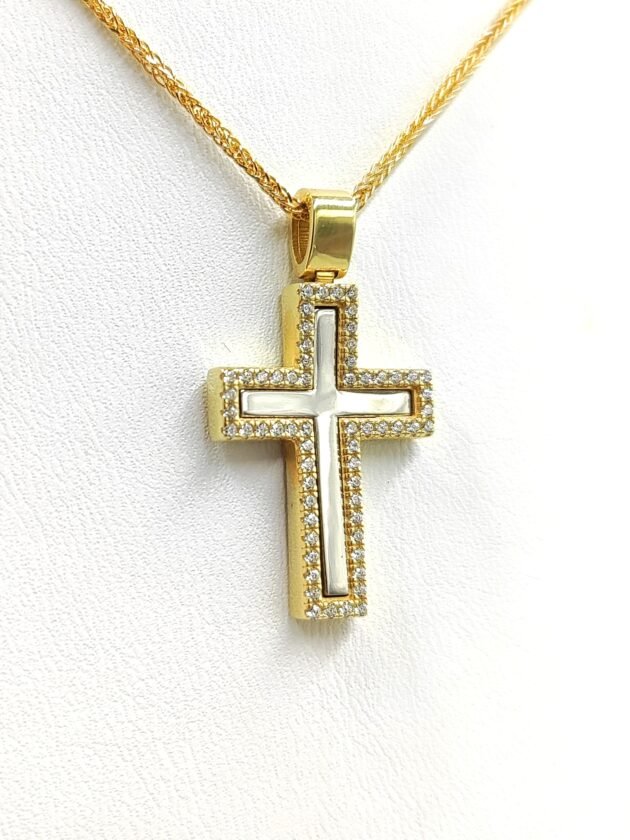 Χρυσός σταυρός Κ14 διπλής όψης, δεν περιλαμβάνει αλυσίδα