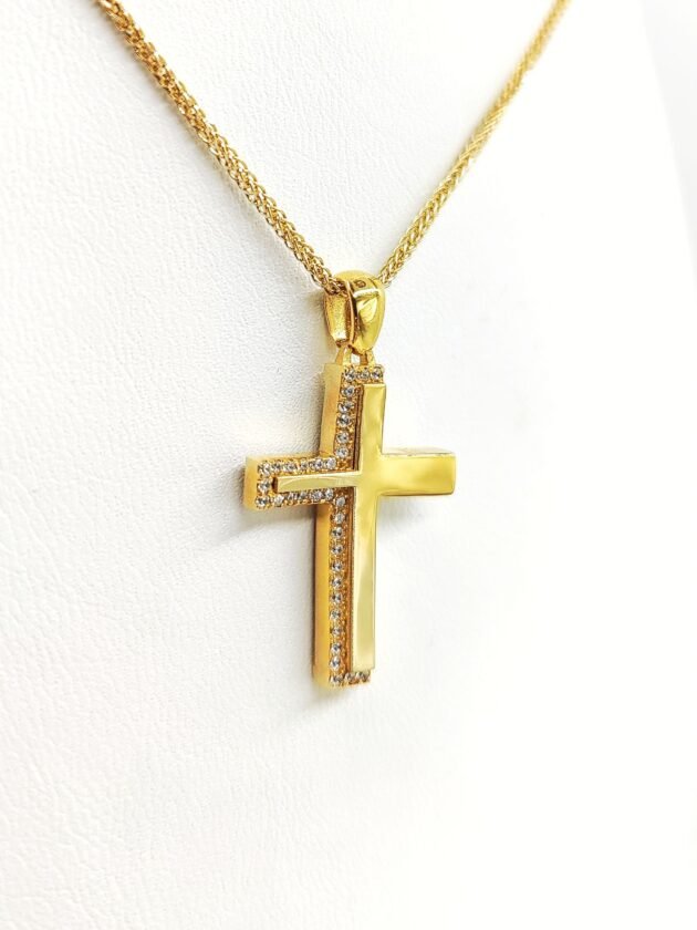 Χρυσός σταυρός Κ14 διπλής όψης,  δεν περιλαμβάνει αλυσίδα