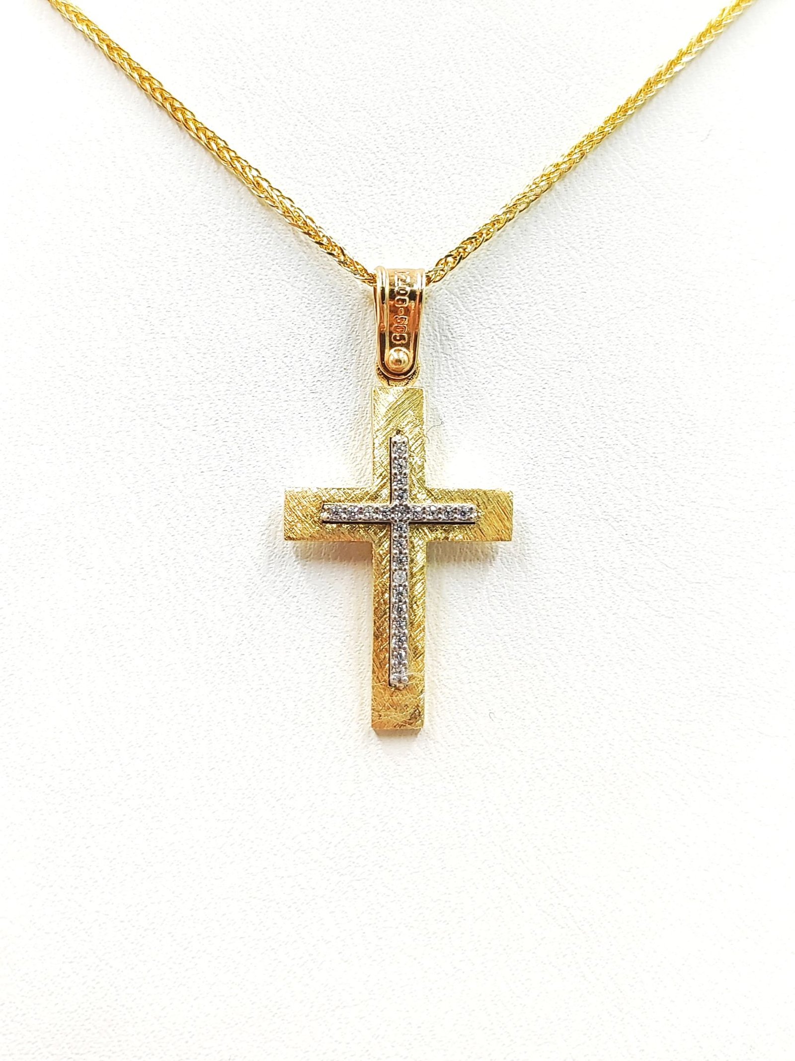 Χρυσός σταυρός Κ14 διπλής όψης, δεν περιλαμβάνει αλυσίδα